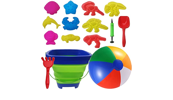 Amazon Com Beach Toys Set Collapsable Silicone Bucket Dinosaur Sand Toy And Shovel Travel Foldable Pails Inflatable Beach Balls For Kids Age 3 14 Toys Games